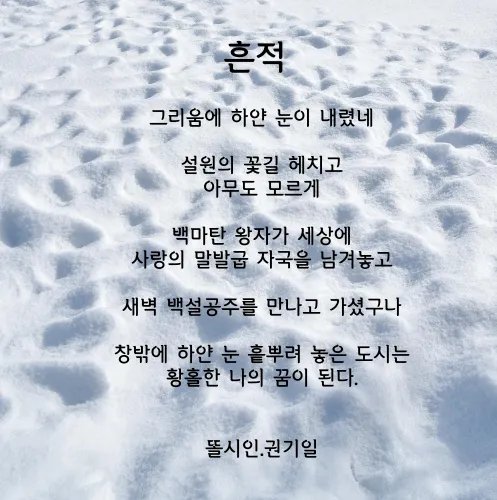 겨울시를 보다가 권기일 시인의 시에 빠져들게 되어 이곳에 담아 봅니다.
