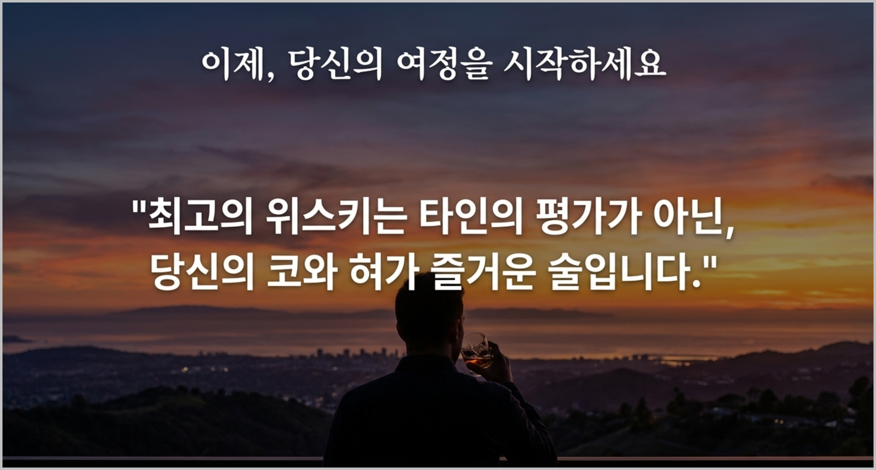 위스키는 '마시는 술'이기 이전에 '향을 즐기는 술'입니다. 타인의 평가보다는 내 코와 혀가 즐거운 술이 최고의 위스키입니다. 오늘 저녁, 편의점이나 리쿼샵에 들러 나만의 '인생 술'을 찾아보는 작은 모험을 시작해 보는 건 어떨까요?