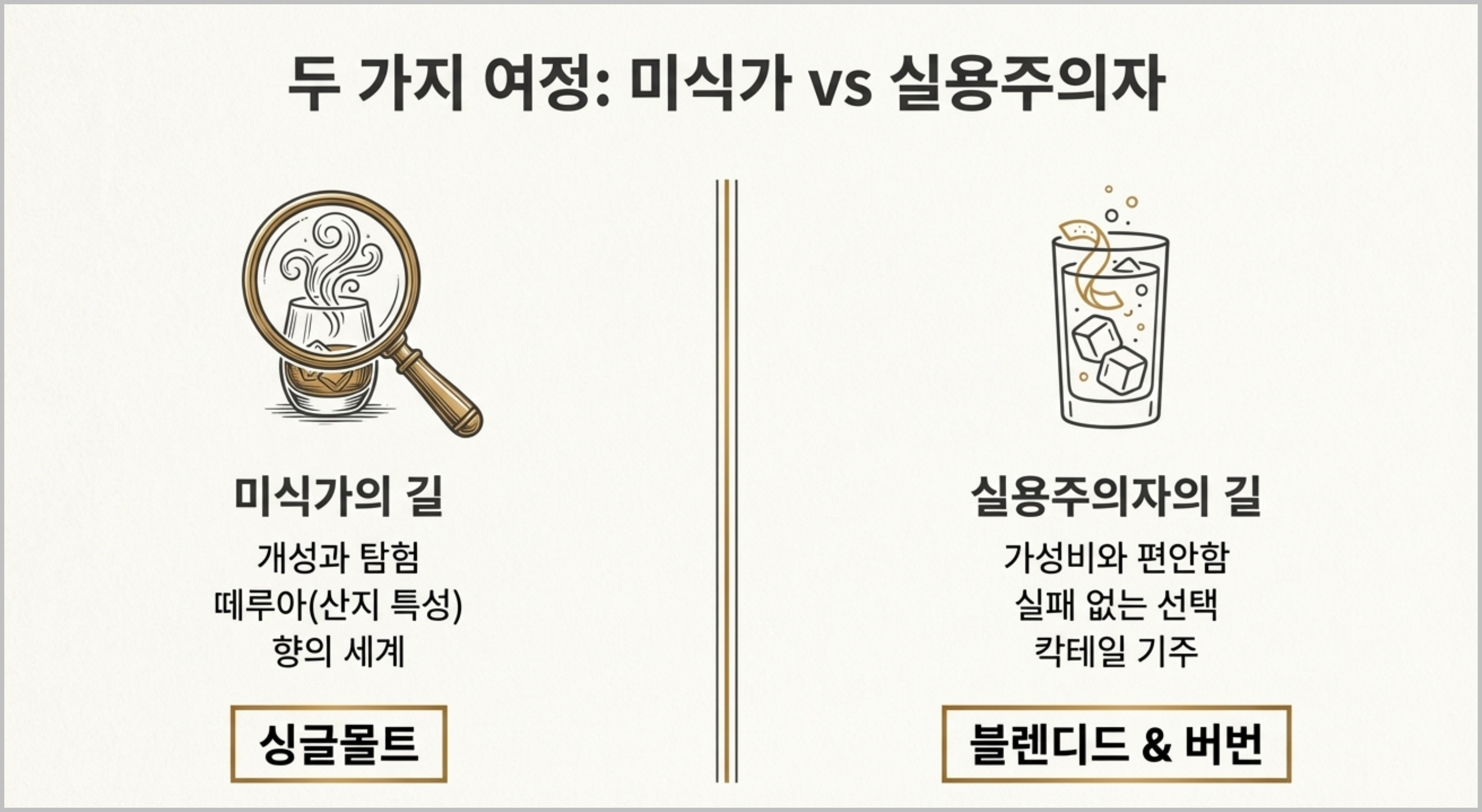 위스키를 고를 때는 단순히 브랜드 이름만 볼 것이 아니라, 내가 '어떤 가치'를 중시하는지에 따라 접근 방식을 달리해야 합니다.