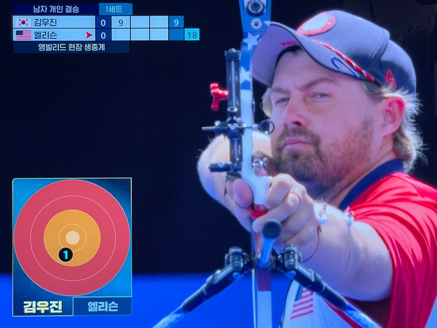멋진 경기로 슛오프까지 갔습니다.^^ 우리나라 김우진 선수뿐 아닌 미국의 엘리슨 선수 역시 너무 멋진 경기를 보여줘서 푹~빠졌던 시간입니다.